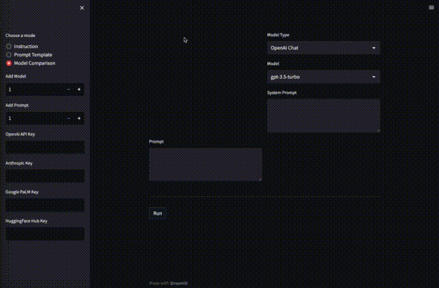 PromptTools offers a playground for comparing prompts and models in three modes: