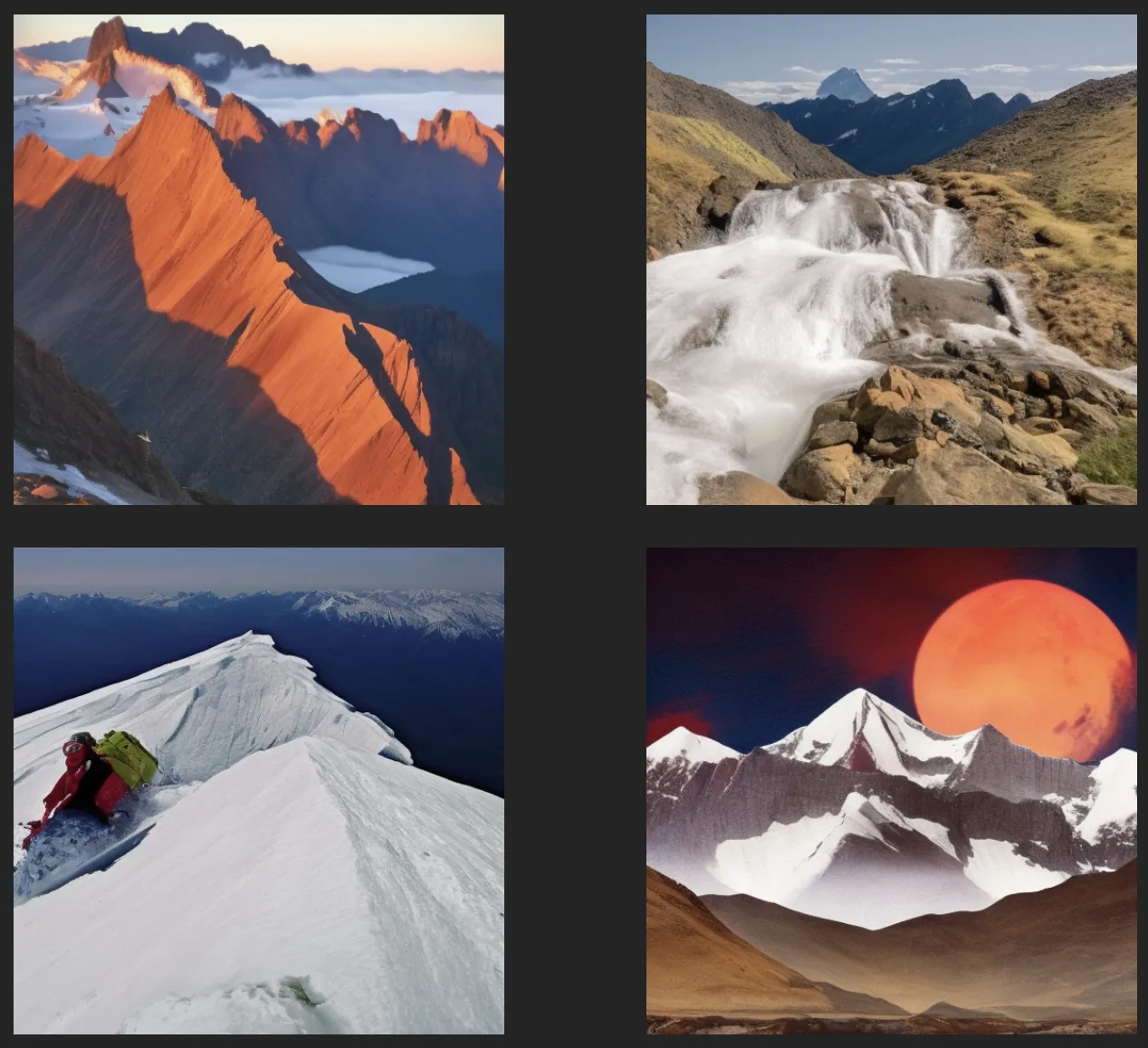 Here are a few mountains generated by Stable Diffusion, with the prompt mountain