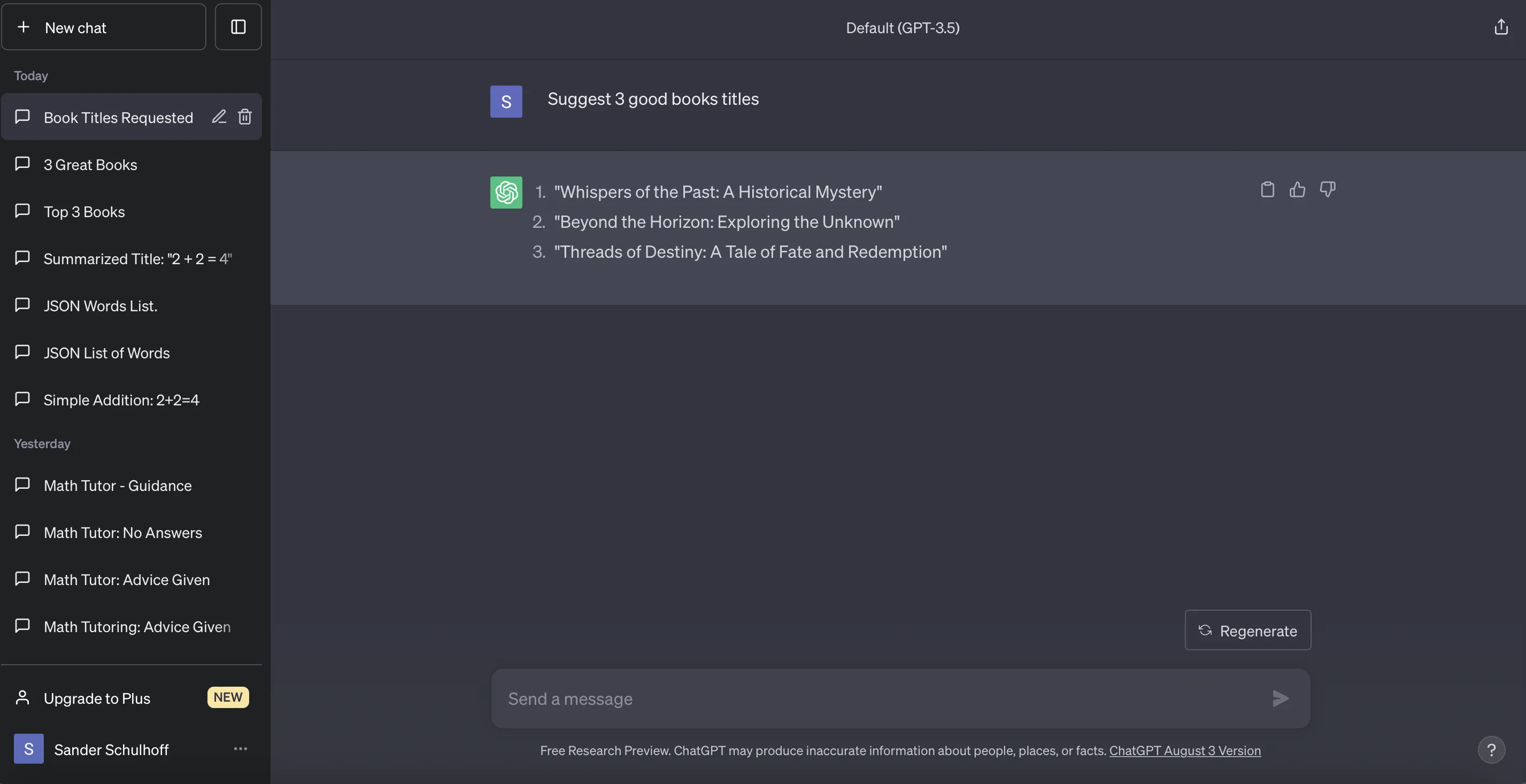 ChatGPT can also solve math problems! Let's give it a prompt with a simple problem.